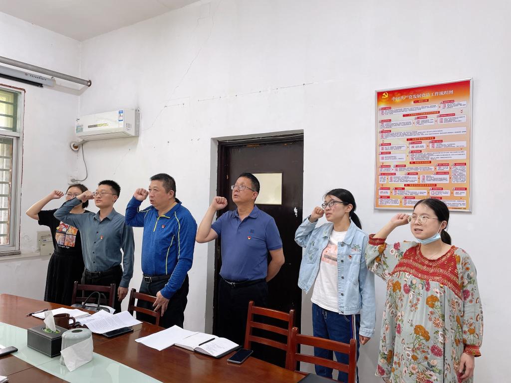 首先,全体党员重温入党誓词,并交纳4月党费。